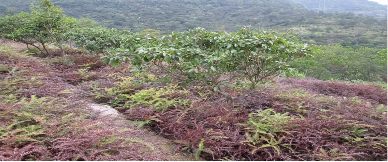 ▲观音山公园内当地村民砍伐森林,又重新栽下小荔枝树。